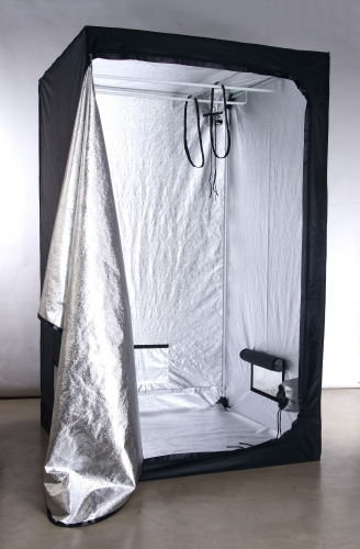 Cette tente c’est normalement utilisé pour cultiver des plantes de cannabis. C’est opaque, a des trous pour ventilation et c’est tres solide.