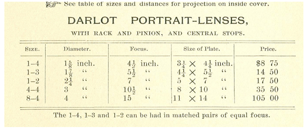 Edit: Here’s a table with sizes and focal lengths of different Darlot lenses. The funny bit is that the diameter of my Darlot is 3″ (7,5 cm) but its focal length is the one with the diameter of 4″ (10 cm). Anyway, here it is: