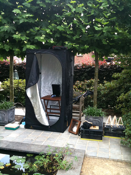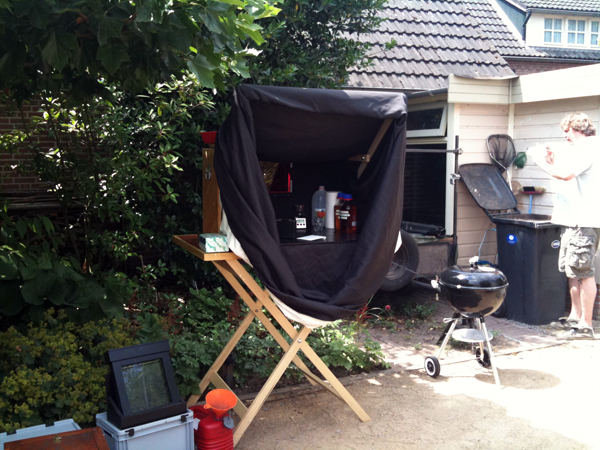 We arrived a bit after 1 and after some coffee started setting up the darkbox etc. Most people were already present and set up. Lots of cameras, lenses, tripods, darkboxes and plates to fill up the garden, the latter being worth of closer inspection on its own with all the plants, flowers and herbs.