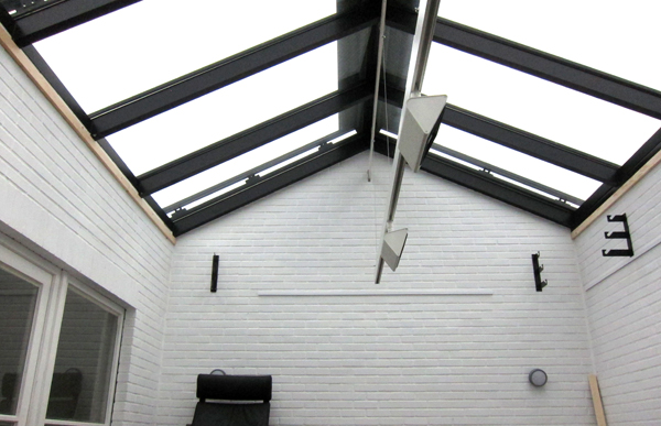 Galerie Zebra - a view into the exhibition space with the daylight studio at the back