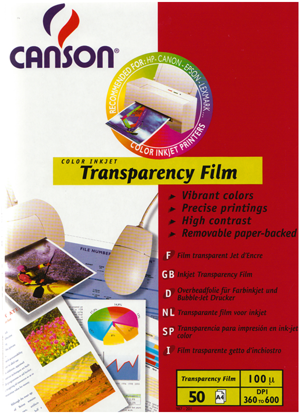 I also bought transparency film today of Canson. Don’t know if it’s any good but I happened to come across it today so picked up a package of 50 sheets A4. We’ll see what happens. Hopefully I’ll get around to trying this all next week…