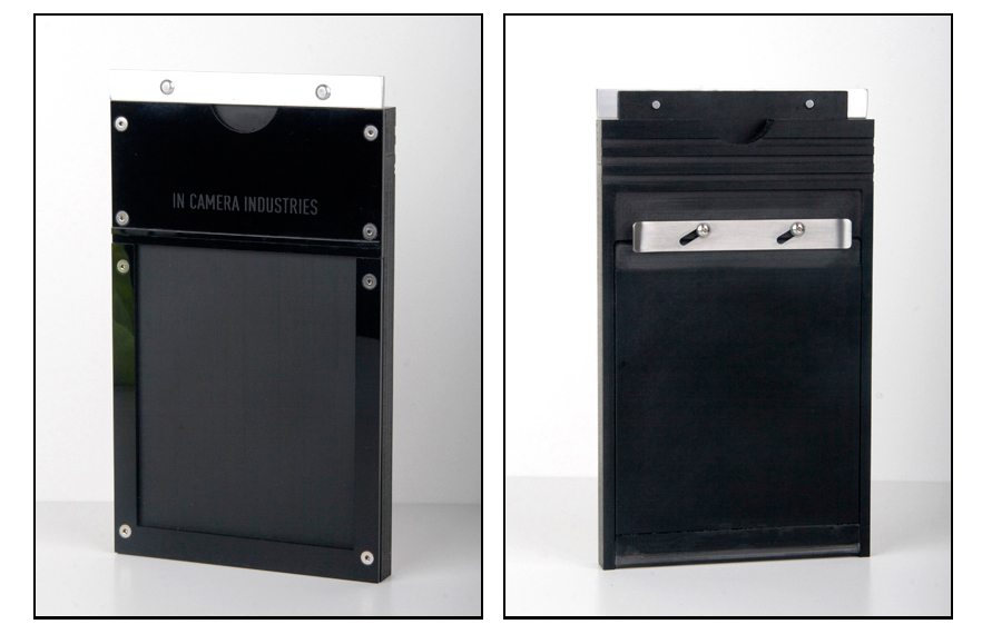 But luckily a holder came on my path (thank you Jeroen!) especially made for shooting wet plates and other alternative thingies that fits a 4×5″ film camera. This back is made by In Camera Industries.
