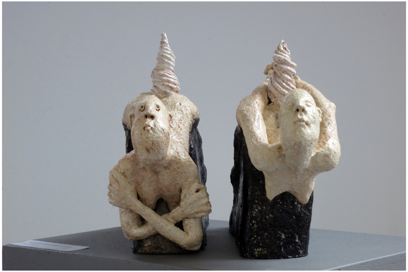 Wilma makes small statues of ceramique, really funny and imaginative. Herma makes lovely pieces of glass.