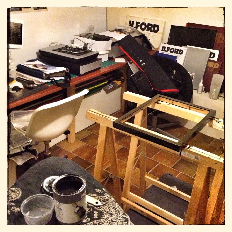 I’m currently painting the frames and prepping the images for mounting. There will be some lith prints and some original-one-of-a-kind wet plate collodion glass plates on display. Should all be finished this week.