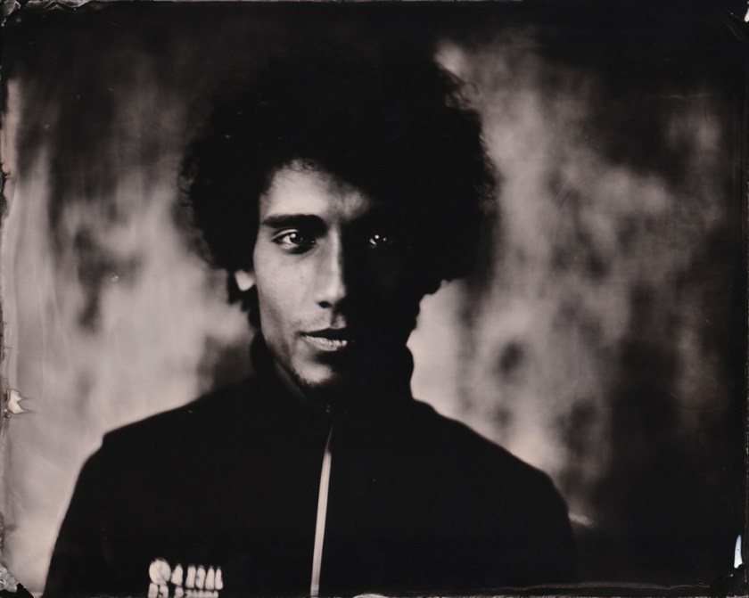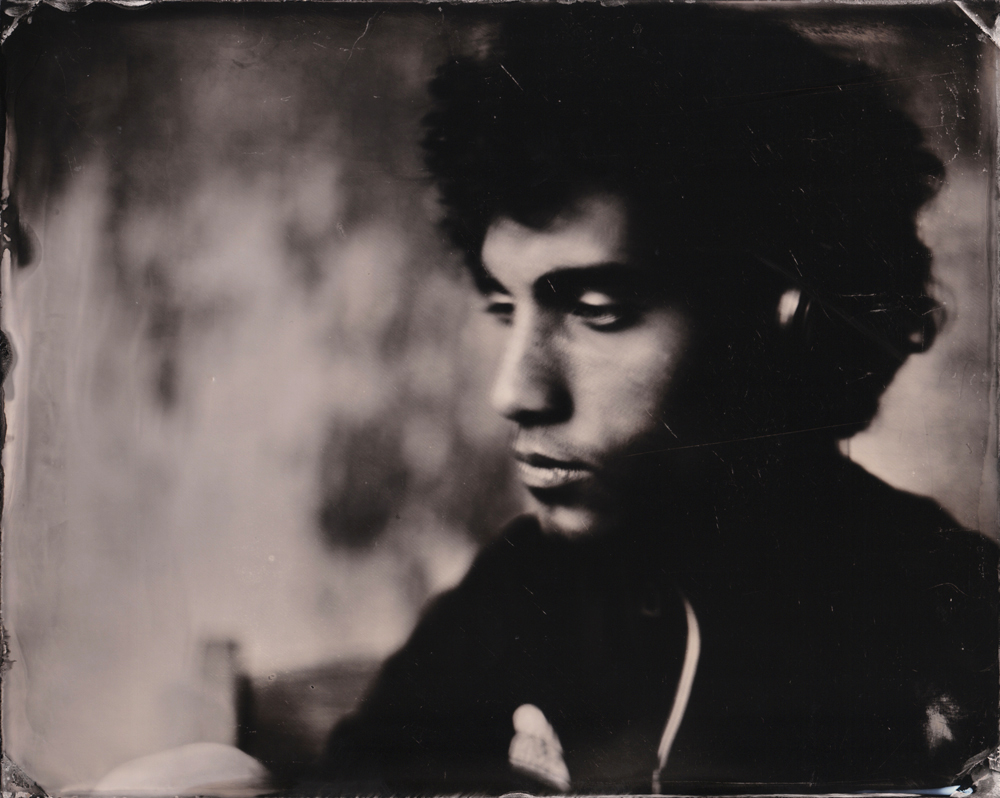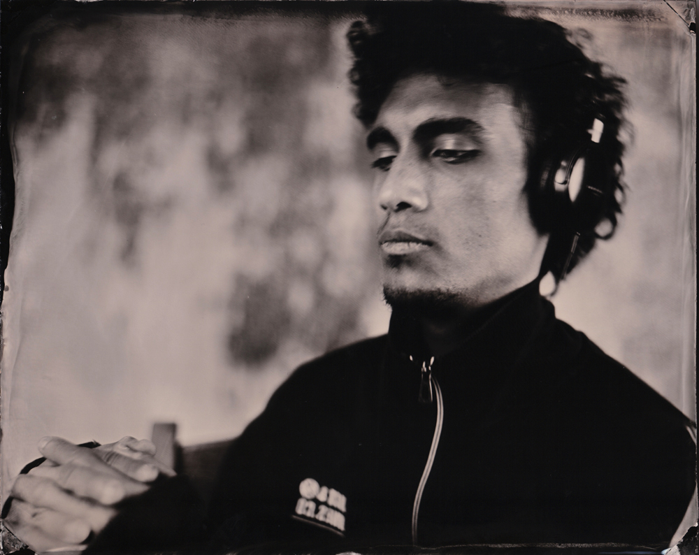 I think I made my most beautiful portrait on collodion of him, not long after I started working with the process at home. Today, 4 years later, I finally was able to get him in front of my lens again, on his on request. The first image I wanted to fit in the series I made two days ago of my mother, grandmother and myself. The next I wanted him to wear headphones as he’s into music (like my other brother) and kind of turned into his own world, which means a significant part of him. One plate is not sharp, it’s the second, and severely damaged because of the too often reusing, but I still like it and it quite captures his personality for me.
