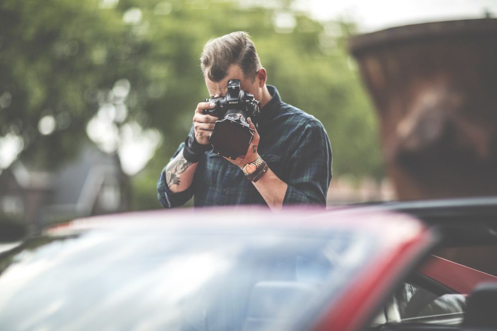 On top of that shoot, he had another proposal for me; As I was now the female “New Artisan” using old photographic techniques, they figured it would be awesome to put Gijs opposite of me as the male “New Artisan” using modern photographic techniques. And that it would be cool if I were to shoot Gijs for these series. WowWowWow! Never expected that to happen! So, I had to shoot a part digitally, funny as I ended up using a Canon EOS 5ds (I don’t like working with Canon AT ALL, but it was okay ;-)) But I was also asked to shoot a wet plate of Gijs, one with one of his cars, and one portrait just like mine.