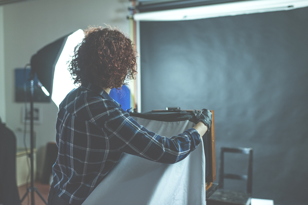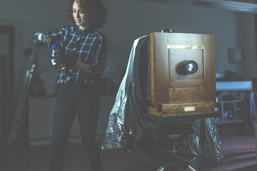 9 0’clock in the morning, the bell rang. The make-up artist, Judith Pronk, arrived. It took the rest about half an hour more to gather. The rest of the team was made up by: Renee Ferron (stylist), Gijs Spierings (photographer), Sherman Emers (videographer) and of course Menno himself. At first hair & make-up, then clothing. I will let the images speak for themselves, but it was a great day. Lots of laughing, laughing until the tears rolled down my cheeks. Let’s say Judith had some work that day 😉 We shot images while me playing around with some of my cameras, some posed, some not so much. But the most cool part was that I was going to shoot a wet plate, and that they could follow the entire process of making them.