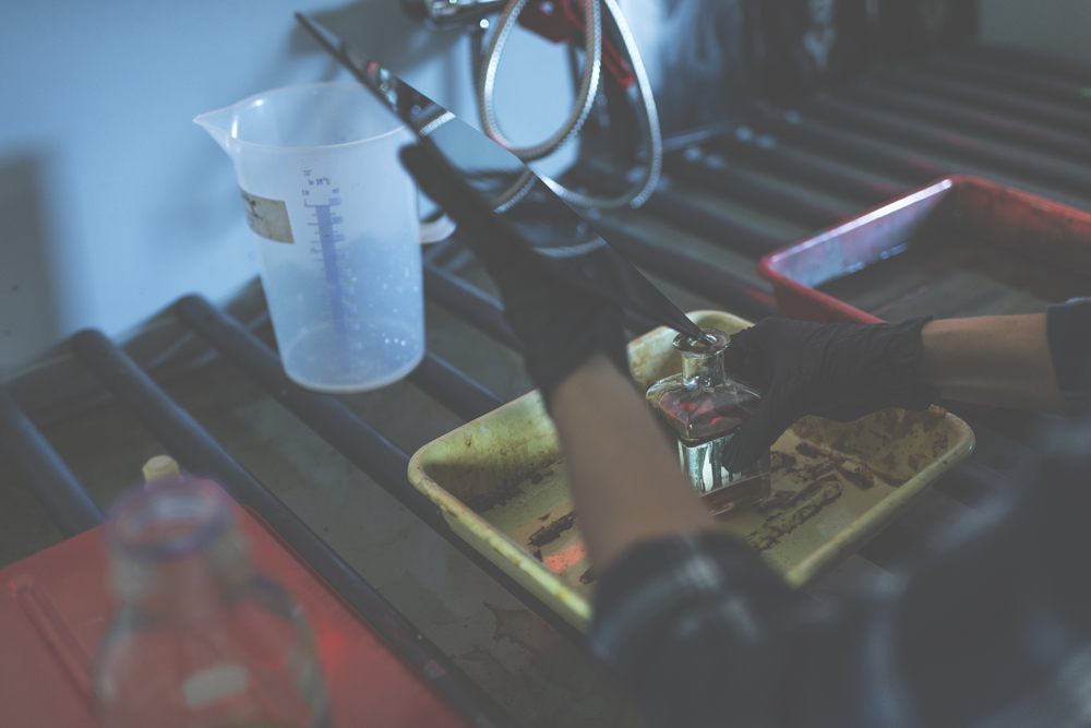 I took of to Veghel where we planned the shoot at the “Koekbouw”, an awesome industrial spot there. The even more cool thing about this shoot was that Gijs normally photographs cars, Mercedes for example. And I just happen to love cars so it all came together! He arranged two cars for this shoot and I would follow him while photographing these. One was a Ferrari 348TS, and the other an old Mustang from 1965, both in impeccable condition. Both awesome as hell! Once again a great day! For collodion however, it was quite hard; temperature that day was 31 degrees. Still issues with my fixing bath giving spots, as became clear after the shoot; rinsing capabilities were limited and no KCN anymore for me. So, not a perfect shoot wet plate-wise but awesome nonetheless!
