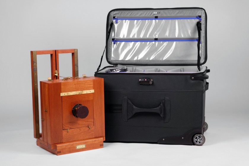 I love to take my camera out in the field, to make collodion images on location. I prefer that over studio images. The only issue that kept me busy of the last few years? How to transport the camera when traveling. Until now I just put the camera in the car, no protection, and dragged it everywhere I needed it to be. I had seen one photo bag that I figured could hold the camera, the TinkTank Logistics Manager, but it was so expensive I never actually tried it.