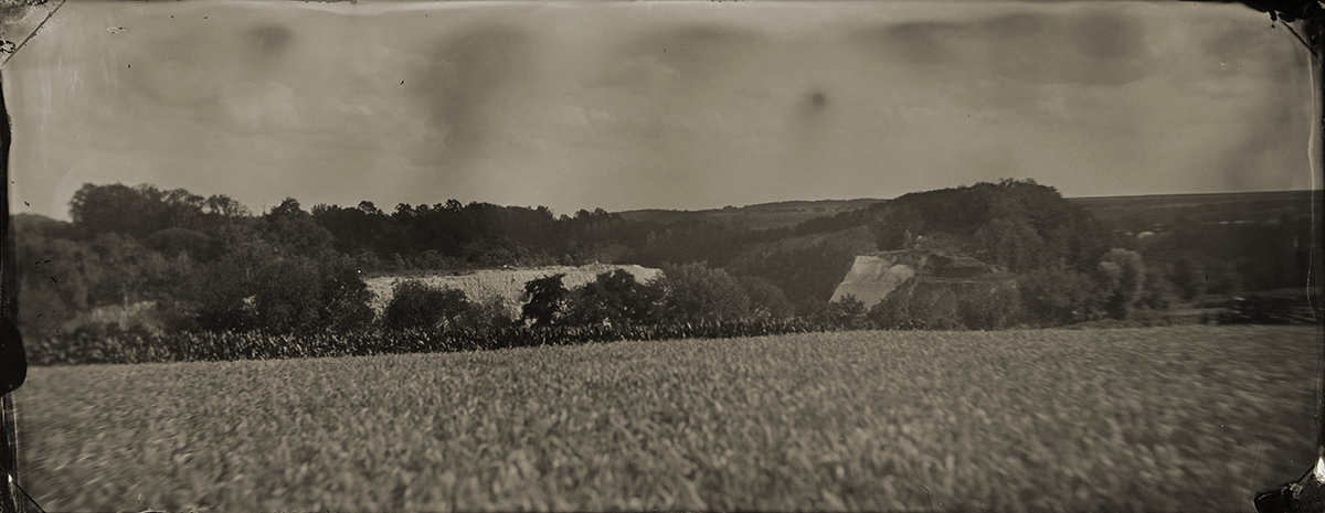 Bassenge in Belgium have a couple of quarries where they mine silex. These are areas of rather large proportions. We have been wandering around them last week for location scouting purposes. Yesterday we sort of went the same direction; the area is so fascinating to wander through, by bike, as well as by car. I wanted to shoot collodion outdoors again and this diverse scenery seemed great for this purpose (and to try that Eskimo Quickfish tent I bought a couple of months back). Finally we found this really perfect spot, on top of Rue du Garage. However, the weather gods decided on a little rain. So, we first went for a coffee in Lanaye, had a chat with some of the locals inside, and went back when the sun came out again.